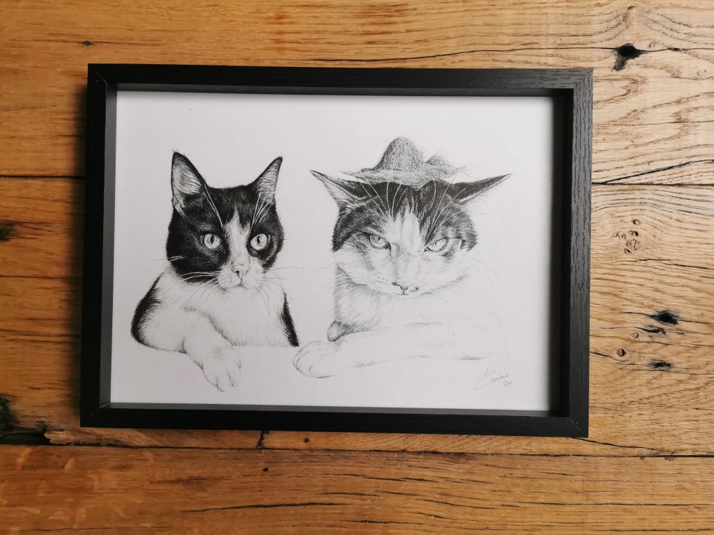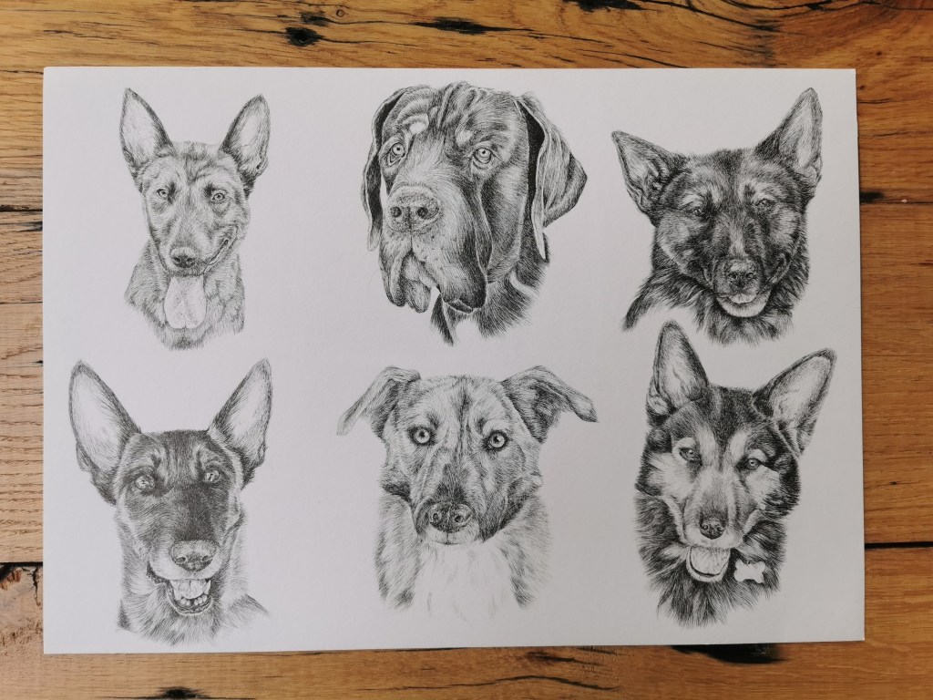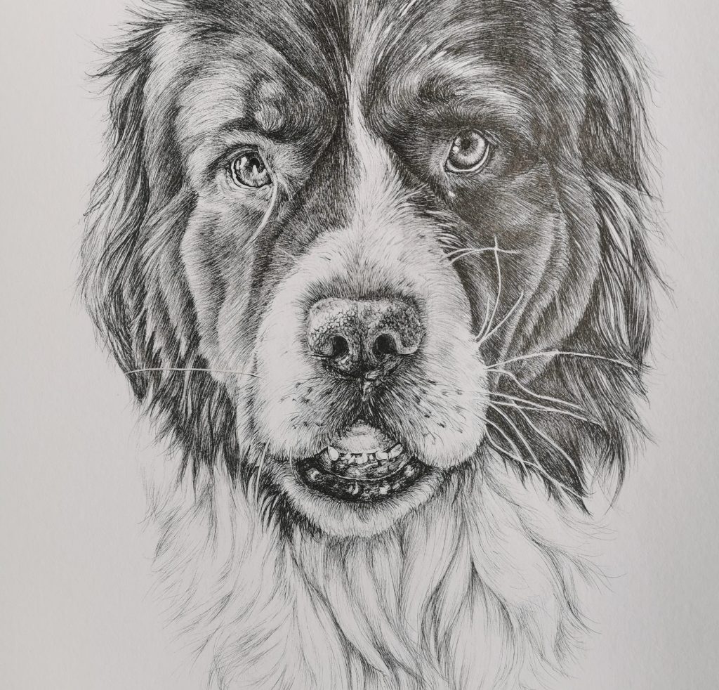 Een andere passie van mij is het tekenen van jehuisdieren. Met fineline-inktpennen van 0.03 mm, op papier. Ik maak een beperkt aantal portretten per jaar. De pennen zijn veegvast, waterbestendig en UV-bestendig. Ook leuk als je op zoek bent naar een uniek cadeau!