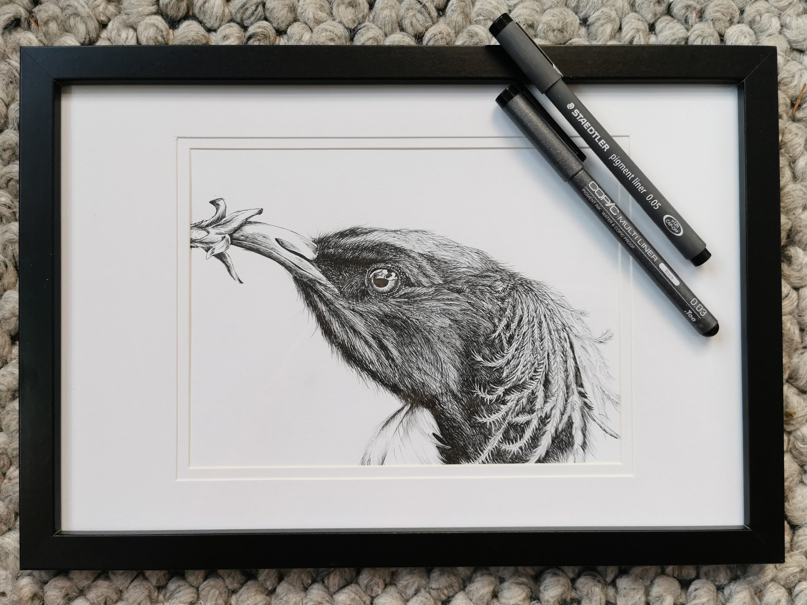 Naast tattoos teken ik ook op papier: met pen en veel geduld breng ik dieren en hun karakter tot leven. Elk portret maak ik op bestelling, zodat het écht iets van jou wordt.